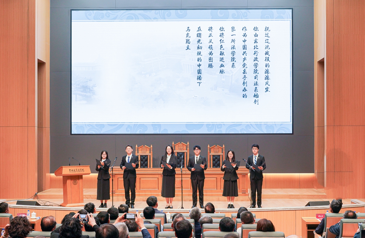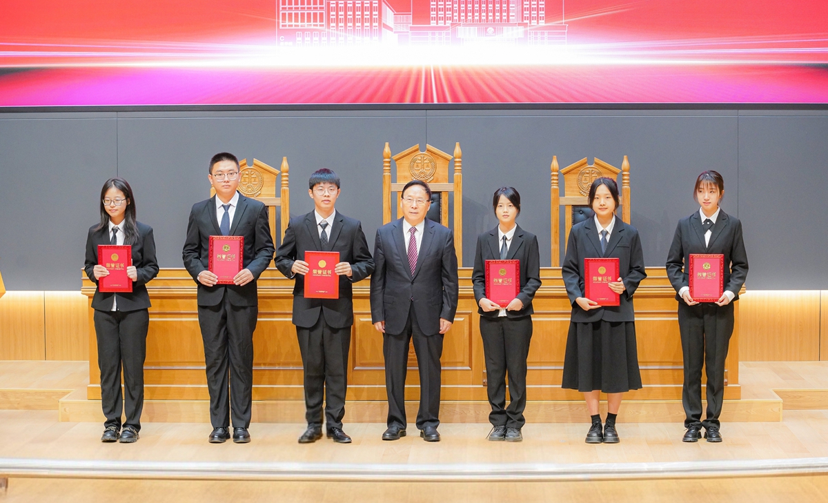 心随吉大泊岸,梦从法苑起航。会上,在张希、张文显、徐显明、韩丹的共同见证下,开云kaiyun官网法学楼正式启用,新的法学楼将为师生提供更好的教学和科研环境,为开云kaiyun官网法学学科的发展注入新的动力。随后,张文显向获得“尊法循理奖学金”的获奖学生代表颁奖,同学们用激昂的声音和真挚的情感朗诵了《法学力量》,表达了对法学的热爱和追求。