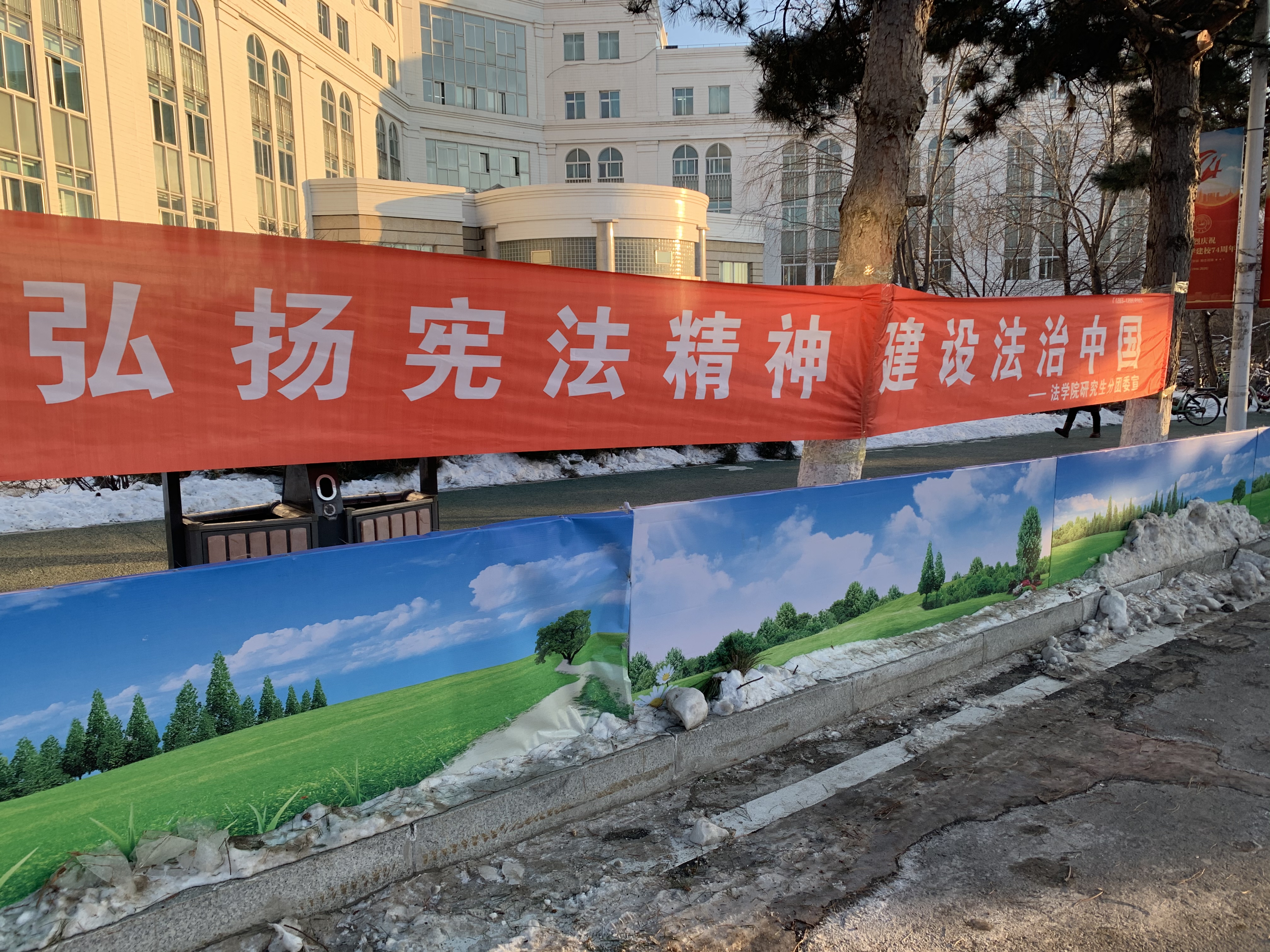 为做好本次宪法主题开放日的前期宣传工作,开云kaiyun官网研究生分团委实践部的全体同学于12月3日下午2时在日新楼和北门附近完成了宣传条幅的布置工作,为宪法主题开放日工作的开展做好了充足的前期准备。