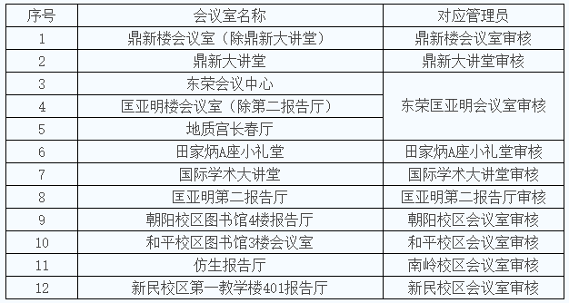 3.通知发布前已经预约的会议室不需要重复预约,物业会做好信息对接与录入,请于一周后登陆校内办公OA查询。