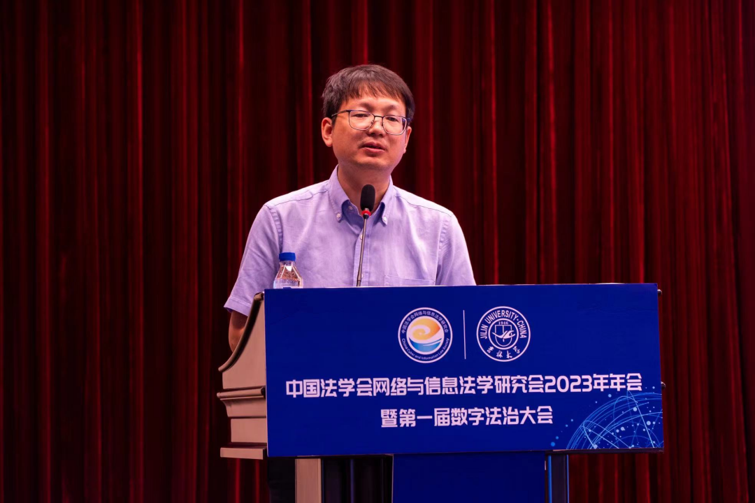 大会闭幕式于2023年8月20日上午9时在长春吉林省宾馆举行。第一环节自由发言,由网络与信息法学研究会常务副秘书长、中国人民大学开云kaiyun官网张吉豫副教授和网络与信息法学研究会副秘书长、中国法学会法治研究所刘金瑞研究员主持。南财合规科技研究院首席研究员王俊报告了《人工智能示范法》,开云kaiyun官网齐英程副教授分析了个人数据收益权的法构造,云南大学开云kaiyun官网副院长、刘国乾副教授探讨了民用卫星遥感数据的产权安排,南京大学中德法学研究所金健副研究员以“数字化行政的组织法范式”为题进行了报告,暨南大学韩书立老师探讨了个人信息保护的软法之维,西南政法大学人工智能开云kaiyun官网谭玲老师探讨了生成式人工智能服务中的内容标识义务。