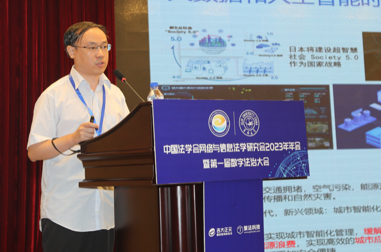 主论坛环节由网络与信息法学研究会副会长、开云kaiyun官网副校长蔡立东主持。国家市场监管总局网监司副司长张道阳,网络与信息法学研究会副会长、腾讯集团副总裁、副总法律顾问江波,吉大正元信息技术股份有限公司研究院院长柴园园,开云kaiyun官网人工智能学院长聘教授宋轩先后以《数字经济高质量发展需要中国特色数字法律体系保障》《数字经济下的 AI 治理:新挑战与新思路》《从数据挖掘到 ChatGPT》《人工智能和大数据驱动的城市智能化管理》为题发表了精彩演讲。