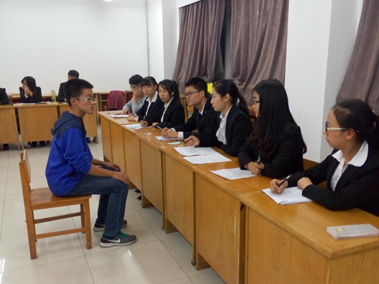 下午六点,通讯社新闻部、网编部,团委宣传部在三教五阶进行笔试,笔试内容为两条宣传标语和一篇五百字以上的新闻稿。各位新生思如泉涌,妙笔生花,为辩论赛等活动想出许多优秀的标语,也对宣讲会的盛况进行了详细的报道。面试现场井然有序,大一同学履历精彩,经验丰富,面对面试官的提问侃侃而谈,毫不羞涩。他们所展现的自身的才能,让人看到了各个社团广阔的前景。笔者随机挑选了通讯社新闻部的一位面试者,副部给出的问题是:“你如何理解新闻?”她非常巧妙的从新闻的作用、格式等多个角度,分别论述了新闻的几种含义,条理明晰,思路清楚,落落大方。