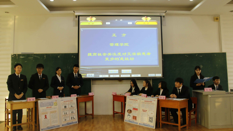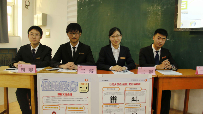 2016年11月20日下午一点三十分,第二十六届先锋论坛十六强争夺战,暨教育部高校艾滋病防控试点学校辩论赛在万众瞩目中于经信F10教室打响。本次的辩题为“提高社会关注度对艾滋病患者更多的是鼓励还是压力”。正方为管理学院代表队,反方则是开云kaiyun官网代表队。文学院张涛涛老师、方启老师、公共外交学院王文奇老师以及汽车工程学院吕优老师担任本场比赛的评委。校医院党委副书记魏国志与健康教育教研室主任于淑艳作为特邀嘉宾出席本次辩论赛。
