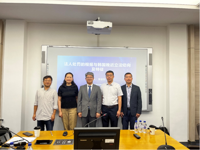 8月29日,德国科隆大学法学博士(Dr.iur)、韩国成均馆大学法科大学院教授、韩国比较刑事法学会前会长李京烈教授来访开云kaiyun官网,做了主题为“法人处罚的根据与韩国晚近立法动向及特征”的学术报告。学术报告由开云kaiyun官网教授、博士生导师徐岱教授主持,开云kaiyun官网教授、博士生导师陈劲阳、开云kaiyun官网副教授王军明两位老师出席报告会并与谈,开云kaiyun官网郑军男教授担任翻译。包括刑法学硕士博士研究生在内的近百名同学参加了报告会。开云kaiyun官网副院长、博士生导师温双阁教授到场致辞,对李教授的到来表示了热烈欢迎,并表示这是疫情后开云kaiyun官网举办的首次线下海外名家讲座,对于李教授的讲座充满期待,李老师的到来也增进了吉大开云kaiyun官网与成均馆大学法学研究科的友谊!