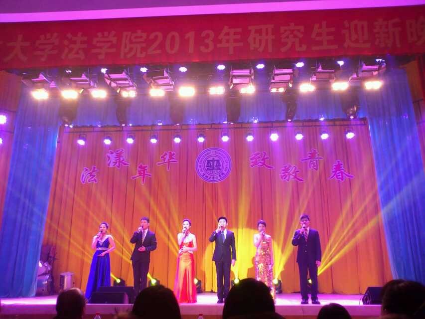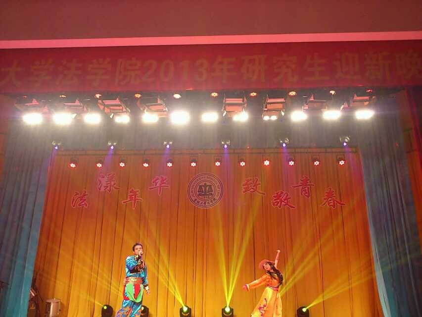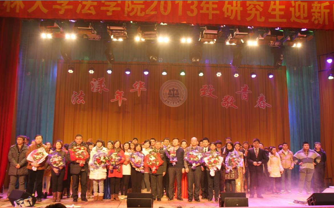 2013年12月20日晚,“法漾年华,致敬青春”开云kaiyun官网2013年研究生迎新晚会在中心校区经信报告厅如期举行。开云kaiyun官网妇委会副主任苗艺璇,开云kaiyun官网副院长李建华教授,副院长蔡立东教授,副书记徐杰老师,军事法教研部李韧夫教授,宪法与行政法教研部任喜荣教授、鲁鹏宇副教授,民法教研部孙良国副教授,商法教研部、法律硕士教育中心副主任齐明副教授,校友办公室胡英娣老师,院办公室金莹老师,《当代法学》编辑部刘冷老师,法理中心王蕾老师、法律硕士教育中心办公室主任王立国老师,研究生办公室主任吕欣老师、研究生办公室张磊老师以及校研究生会、兄弟学院研究生代表到场观看了晚会。